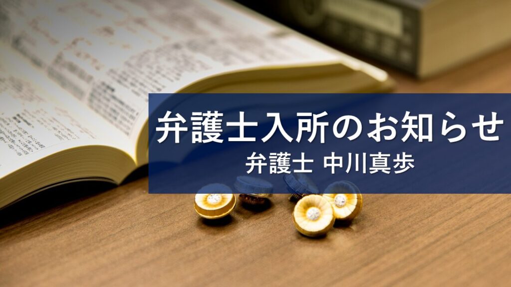 新たに加わりました中川弁護士ならびに当事務所へ、今後とも変わらぬご指導ご鞭撻を賜りますよう、よろしくお願い申し上げます。